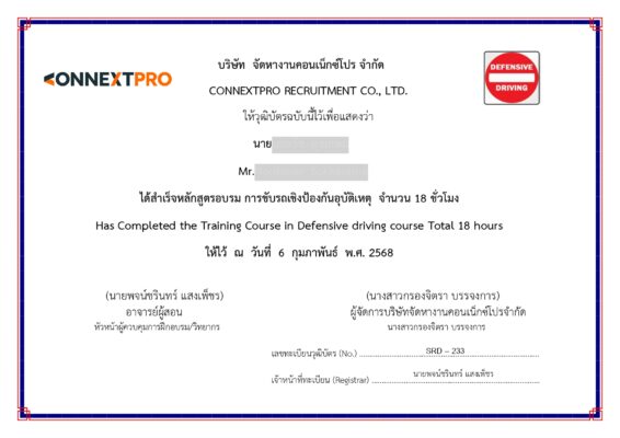 มีความรู้ด้านการขับขี่ เสมือนอาจารย์ ที่สามารถไปสอนคนอื่นๆในบริษัทคุณได้ด้วย